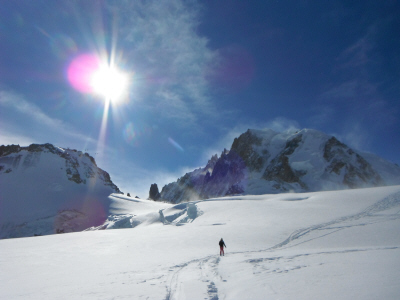 descente de la Vallée Blanche de bon matin, c'est en peau de